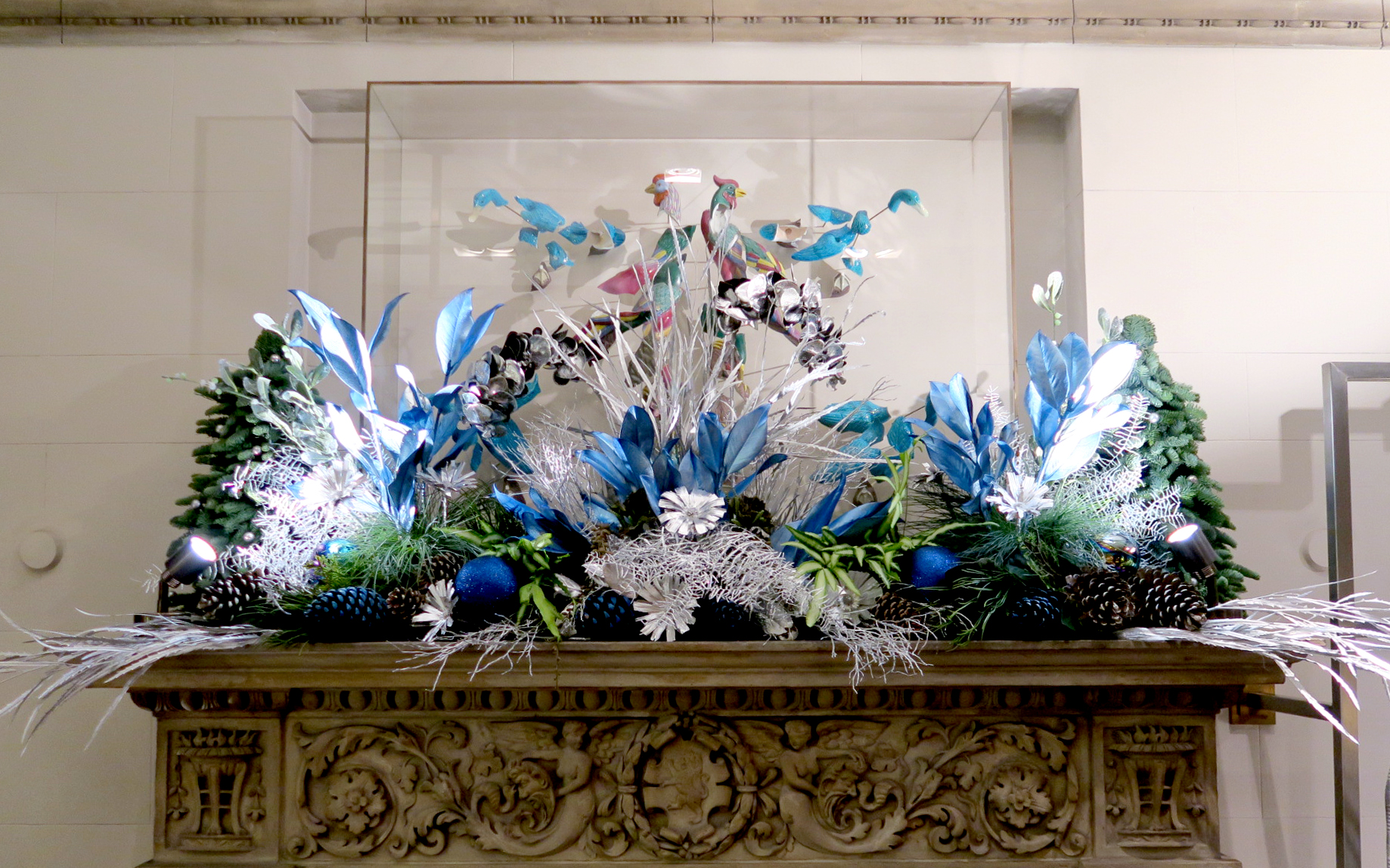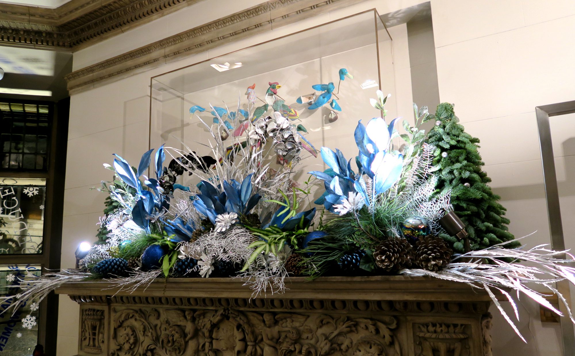 Inspired by the colours of their current collection we dressed the Roland Mouret Mayfair store with a blue and silver Christmas display – adorning the entrance steps, front windows and ground floor of the store with leaves, branches, flowers and baubles.